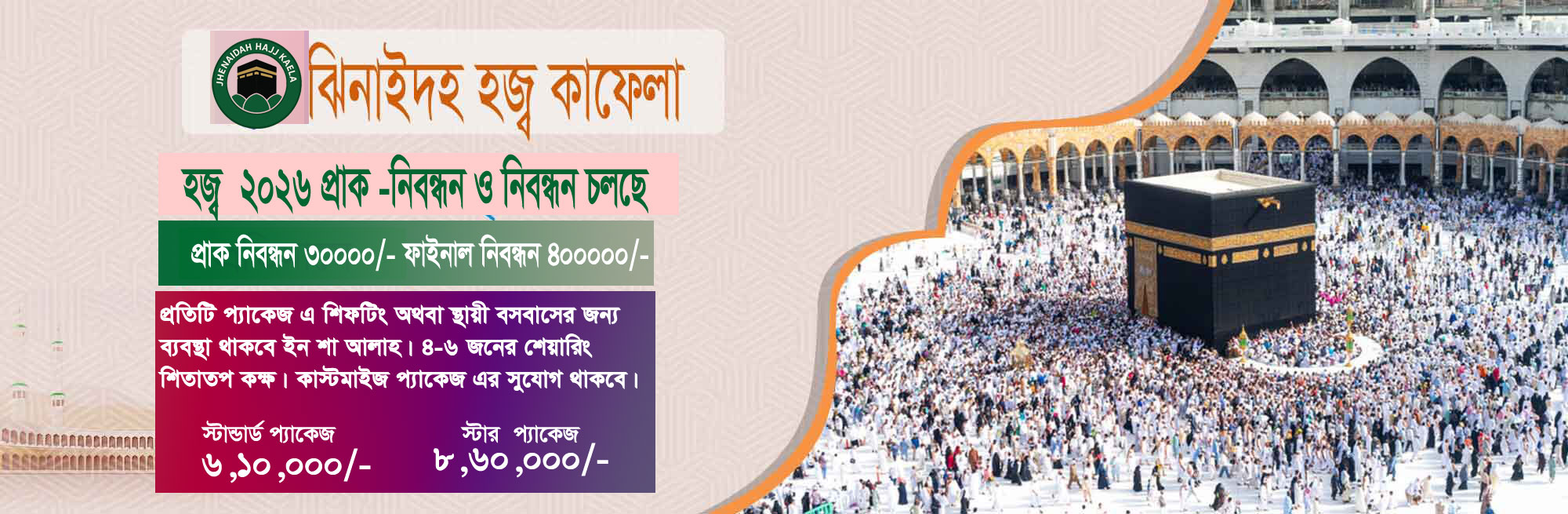 Jhenaidah Hajj Kafela Operated by Alhajj Abdus Sattar. its started from 2009, in the year 2009 perform 30 pilgrim hajj with Abdus Sattar. Jhenaidah is a farming land of Bangladesh. Hajj and Umrah Service operated here is a big door open for religious muslim people.